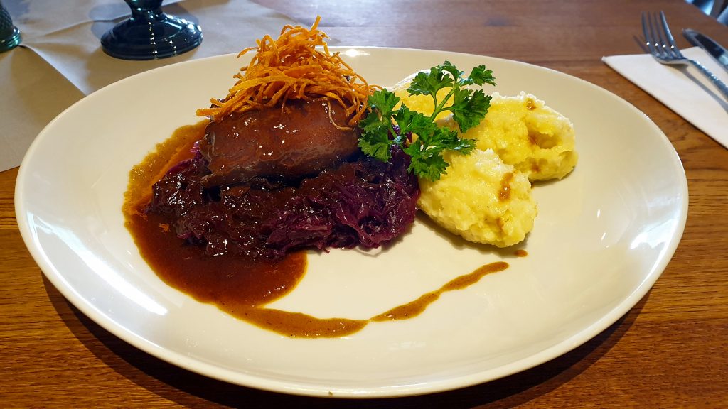 Irisches Rinderfilet auf Rotwein-Sauce, Amberkartoffeln